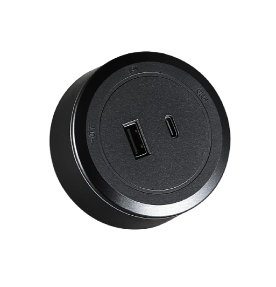 راس فيش مجرى دائري اسود USB مع TYPE-C توفل