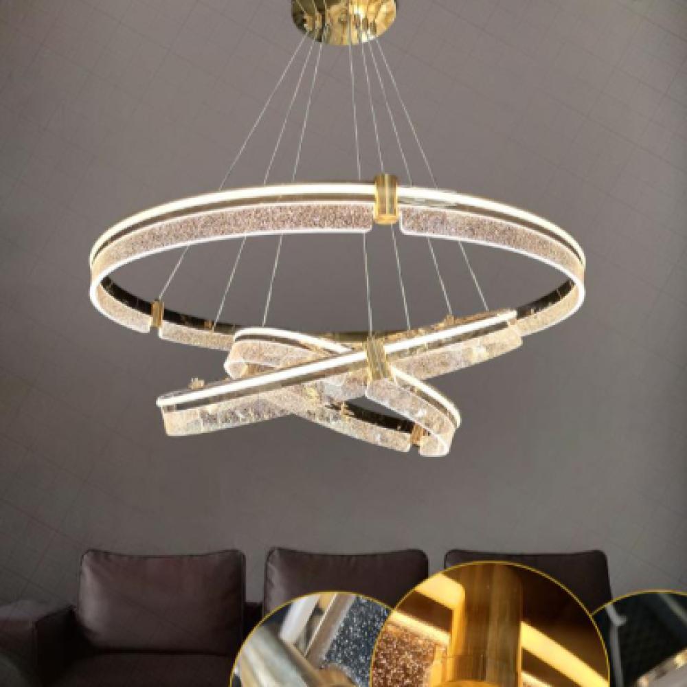 علاقي ليد ثلاثي باضاءت متعددة الالوان وتصميم عصري ولون الهيكل ذهبي مقاس 40+60+80