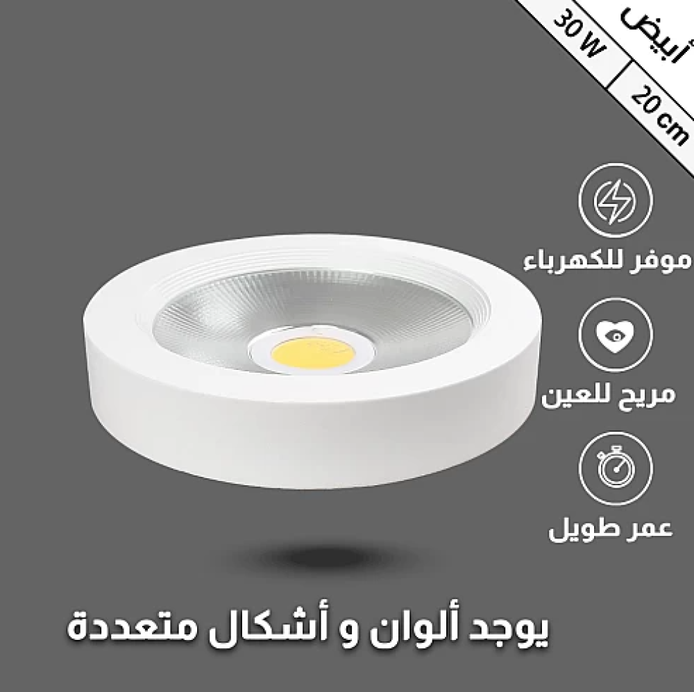 لمبات ليد للسقف لمبة لطش لون الاضاءة ابيض 20 سم 30 واط لون الانارة خاصية عاكس شفاف يمنحك اضاءة سقف جميلة وهادئة.