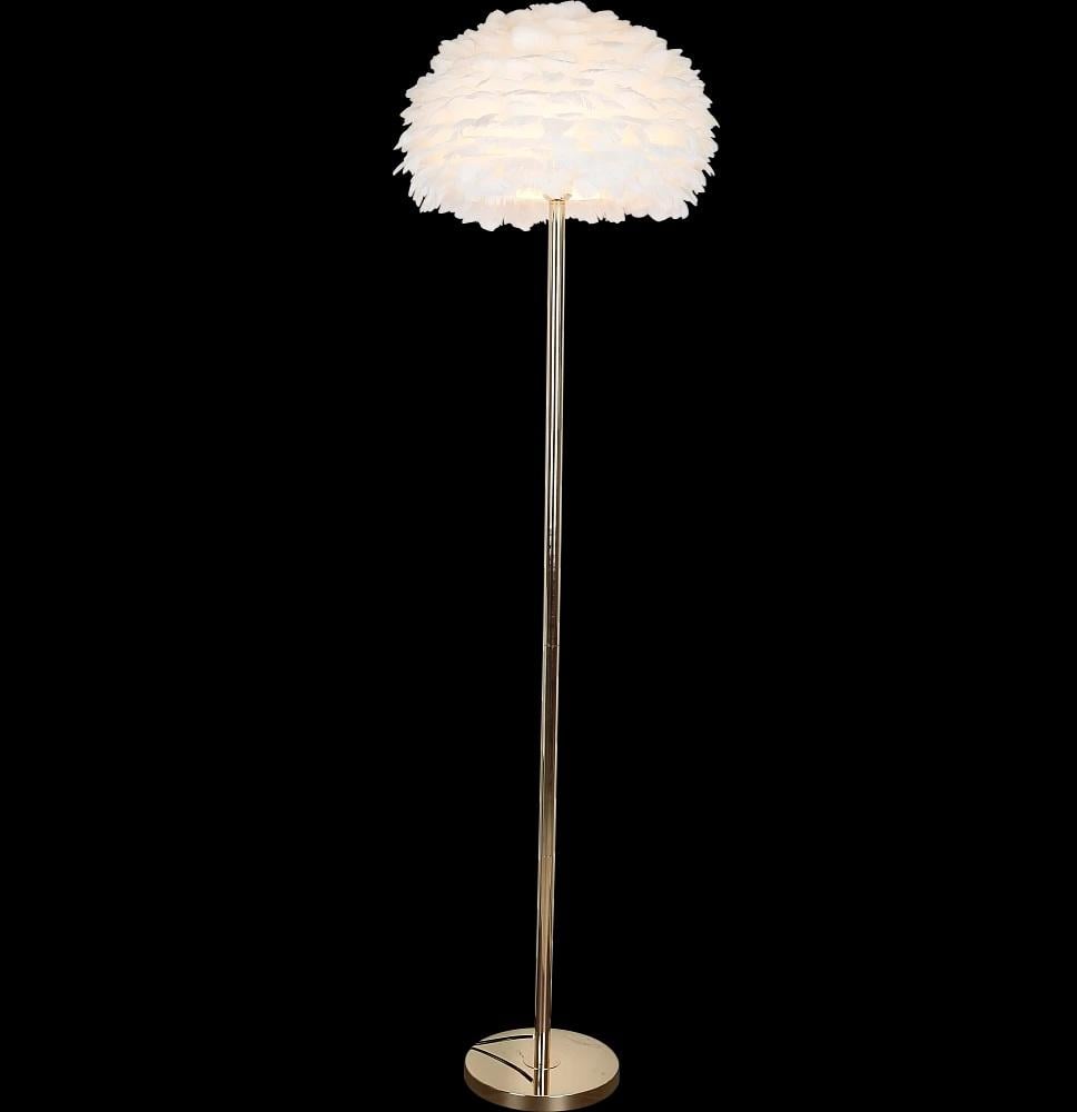 ابجورة طويله و إضاءة ارضية مودرن شكل ريش ناعم لون ذهبي بتصميم ساحر وملفت للنظر
