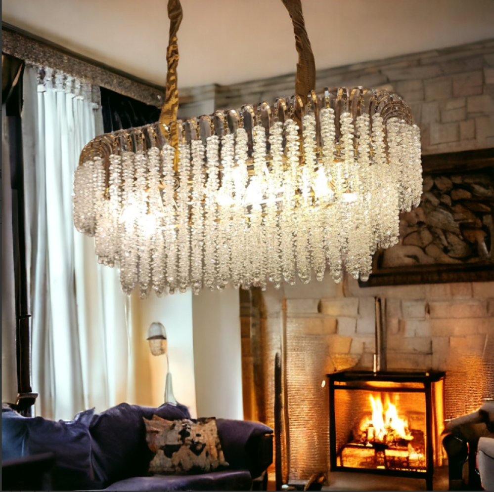 استمتع بإشراقة الضوء المثالية التي تنتشر في غرفتك عبر ثريات مستطيلة كريستال. تصميمها الرائع يعزز ديكور منزلك ويضفي طابعًا من الفخامة على أي مكان، مما يجعلها إضافة مثالية لأي غرفة.