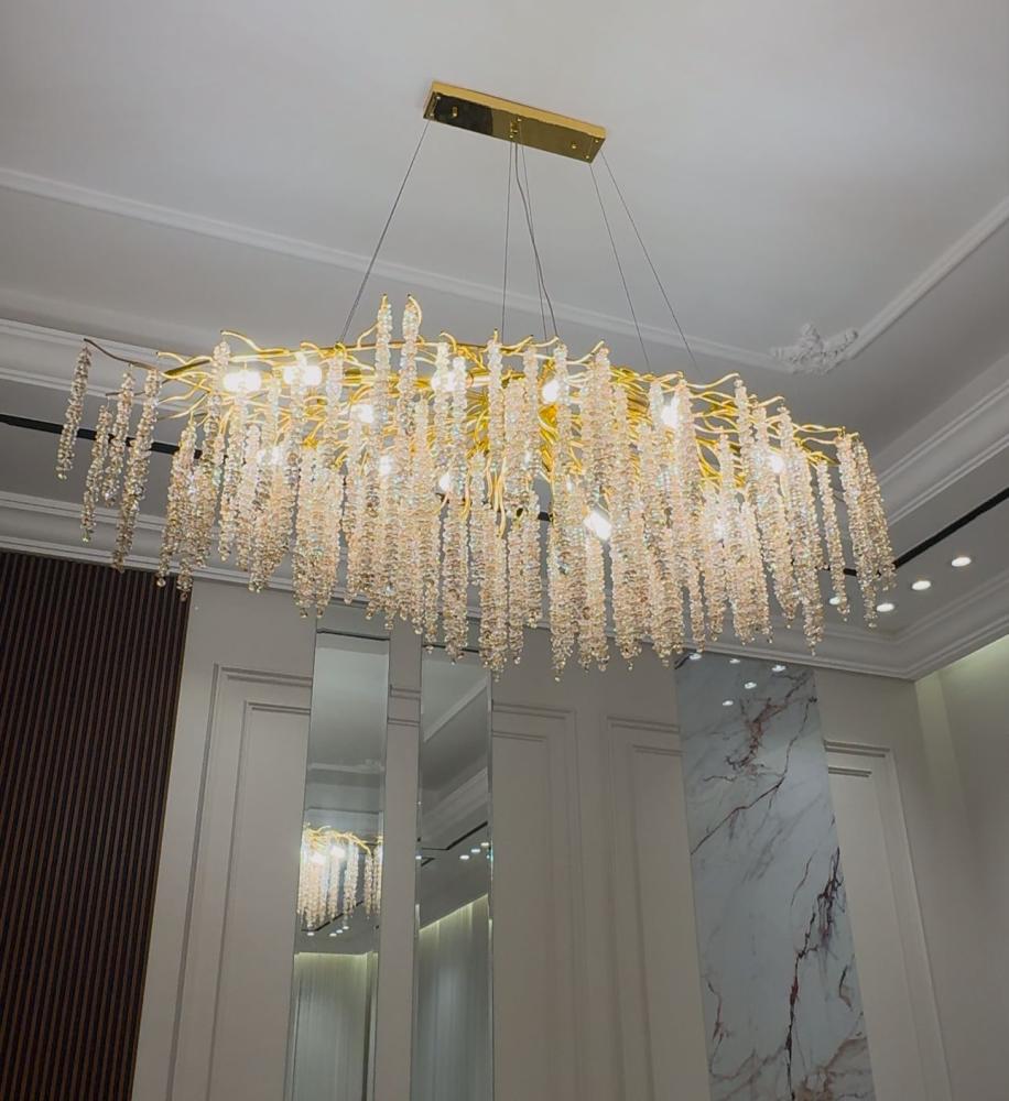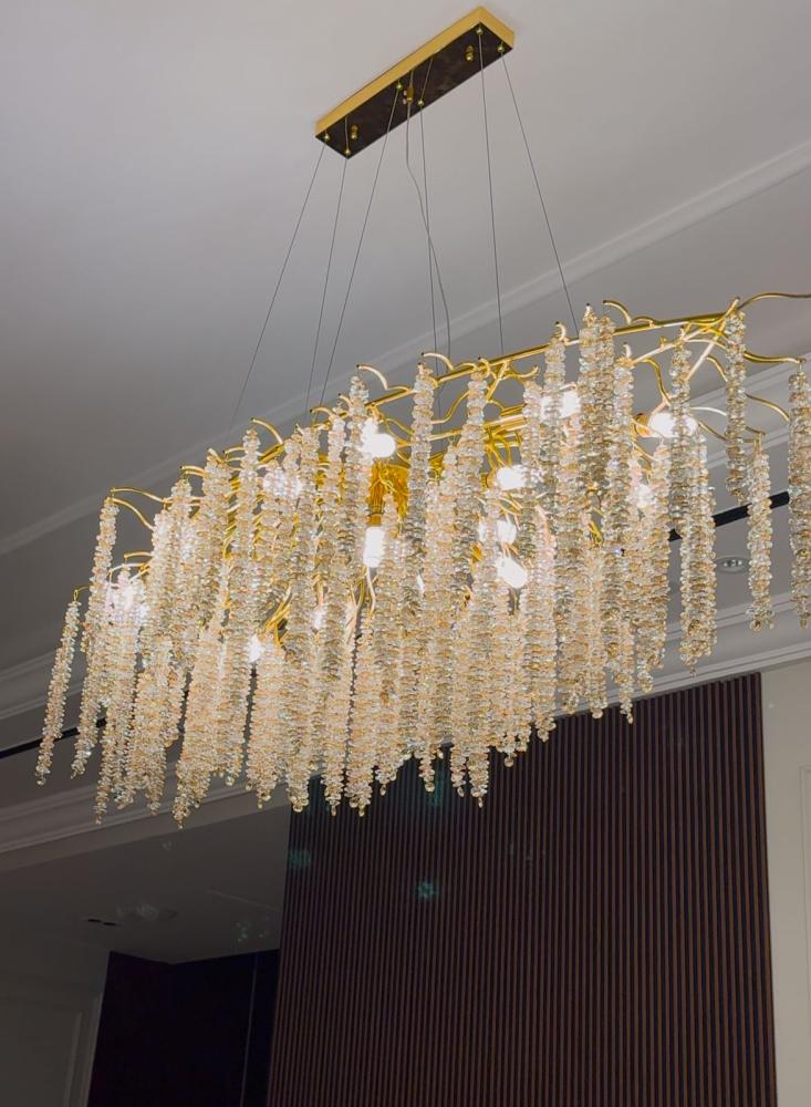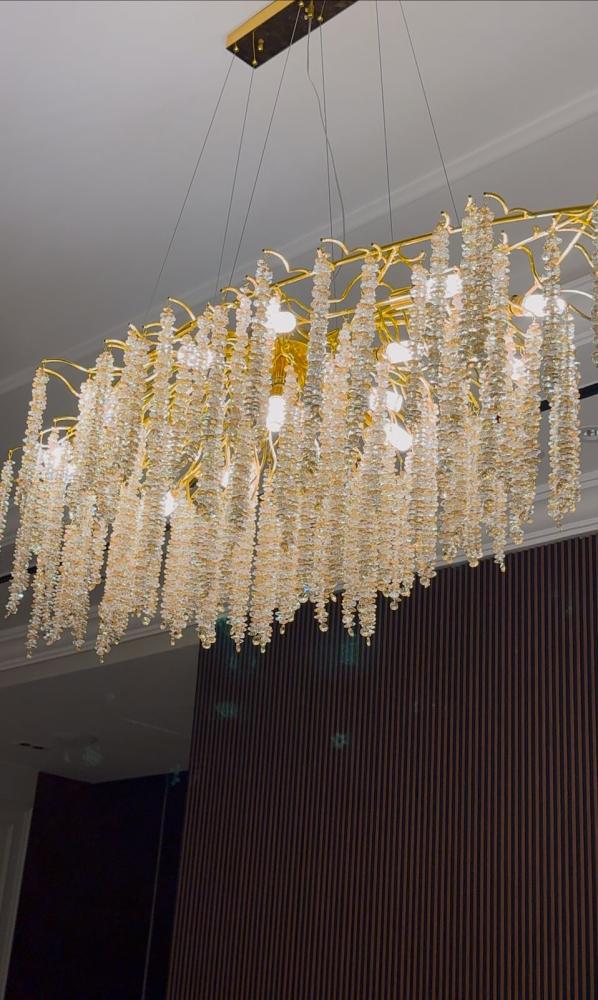 ثريا الهبه مودرن كرستال مستطيل طول160 سم كرستال شفاف وعسلي